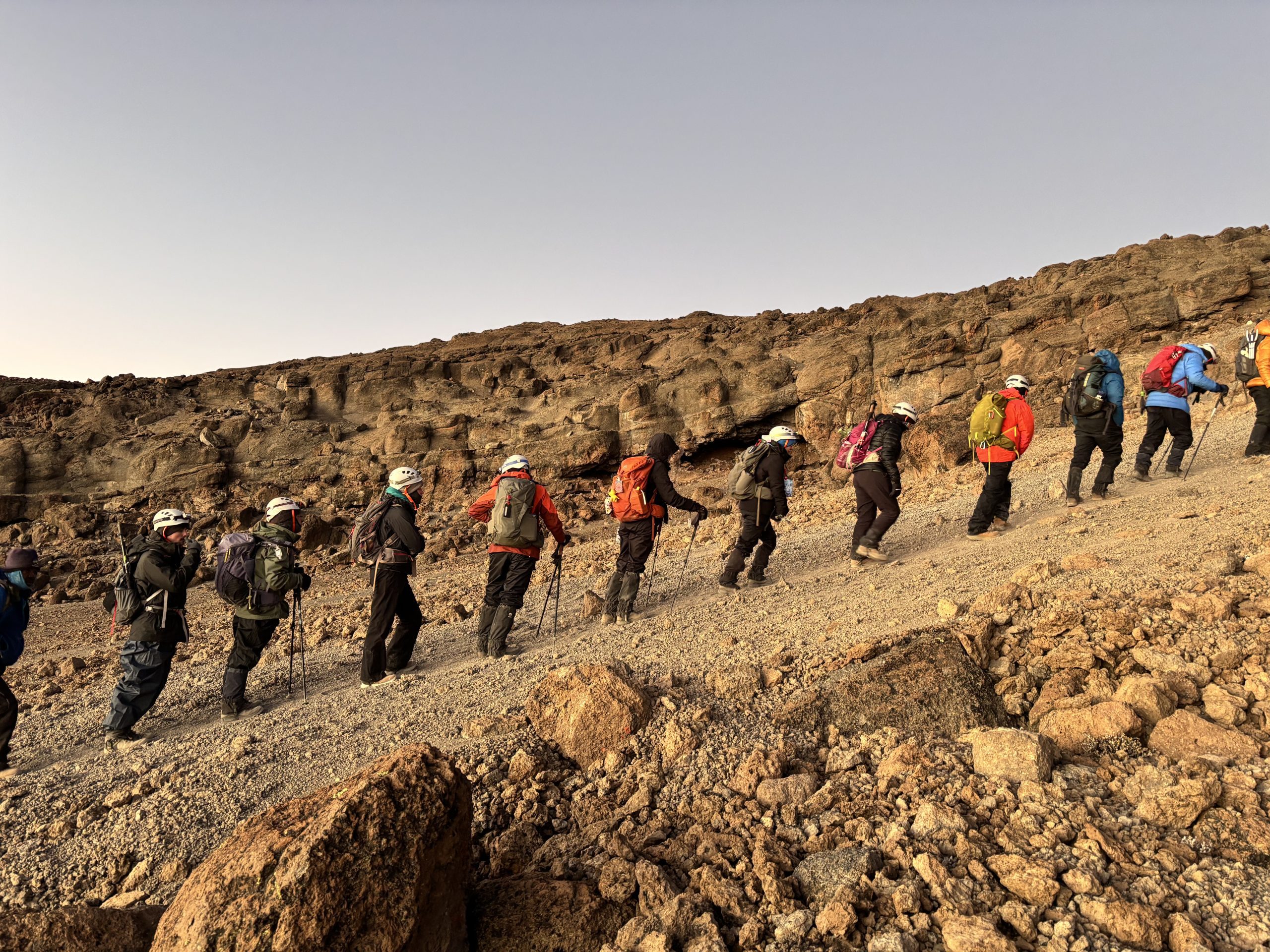The Annears are pictured hiking up the side of Mount Kilimanjaro