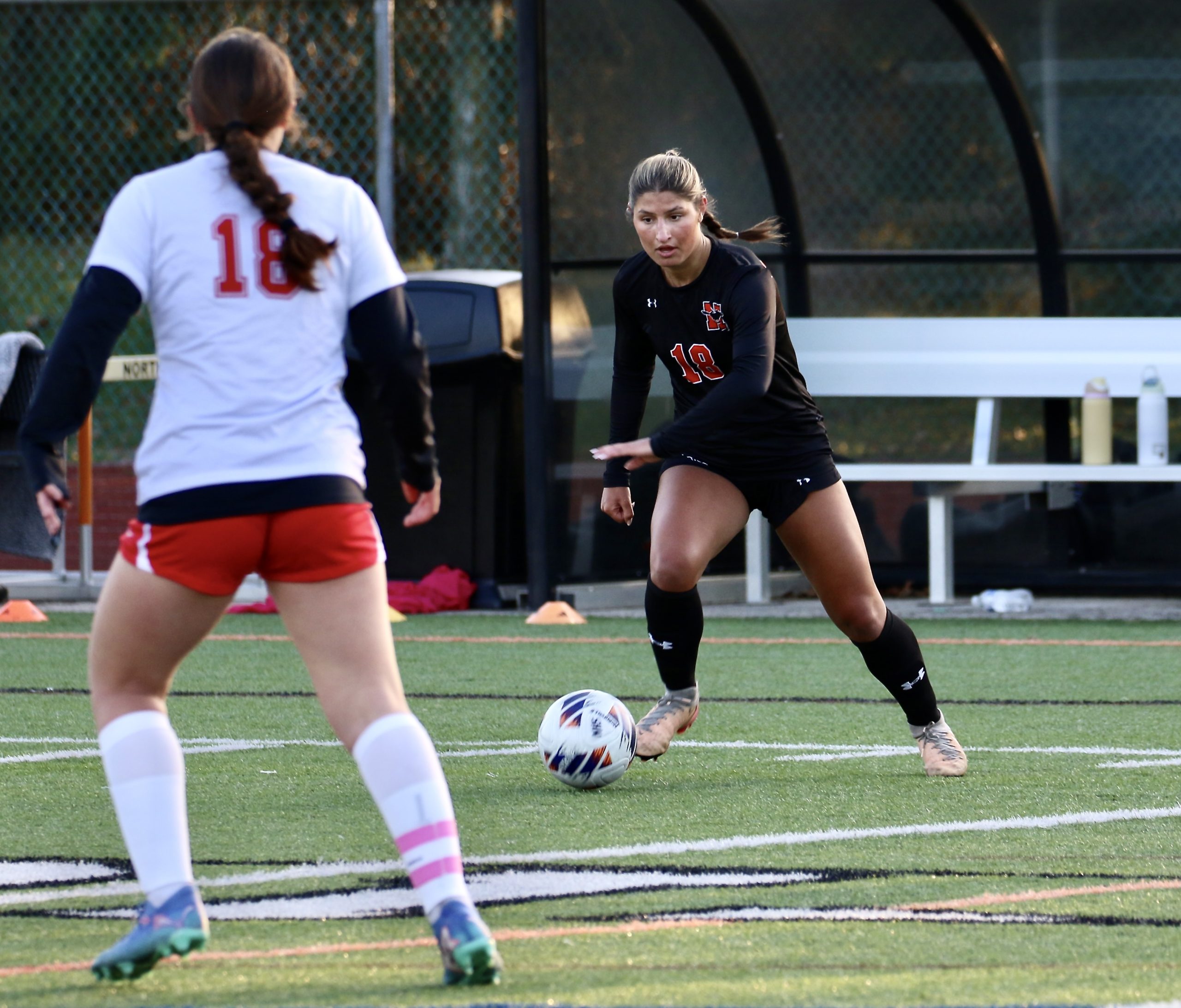 Among Eiler’s eye-popping stops were a first-half dazzler when she smothered a shot by a hard-charging Bohlen from just outside the goal box. As the sun was setting on the 30-degree night, Eiler dove to her right to deny Yaquinto of a second goal.
