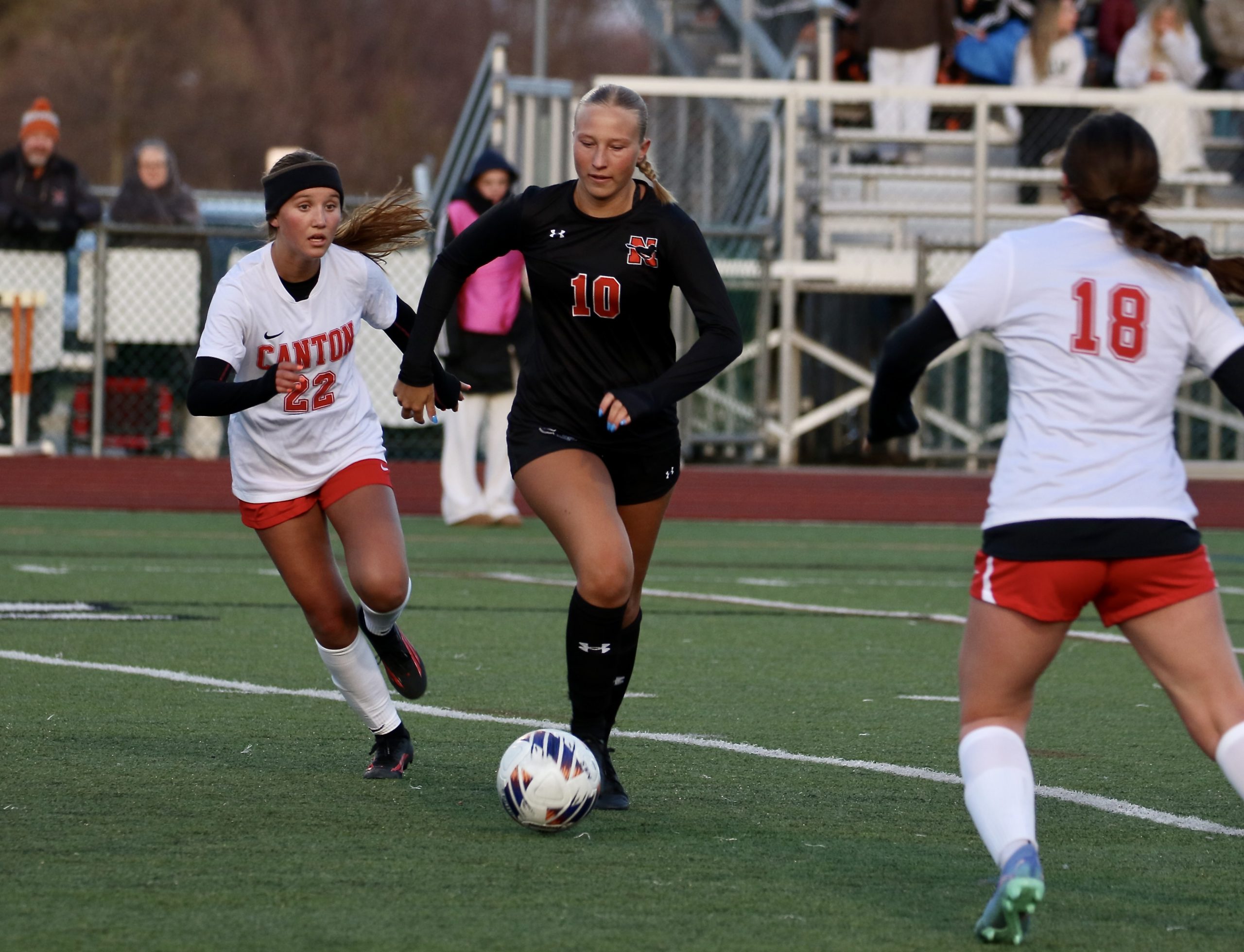Northville’s Avery Hooper advances the ball during Tuesday’s 5-1 win over Canton. PHOTO COURTESY OF RYAN DALES
